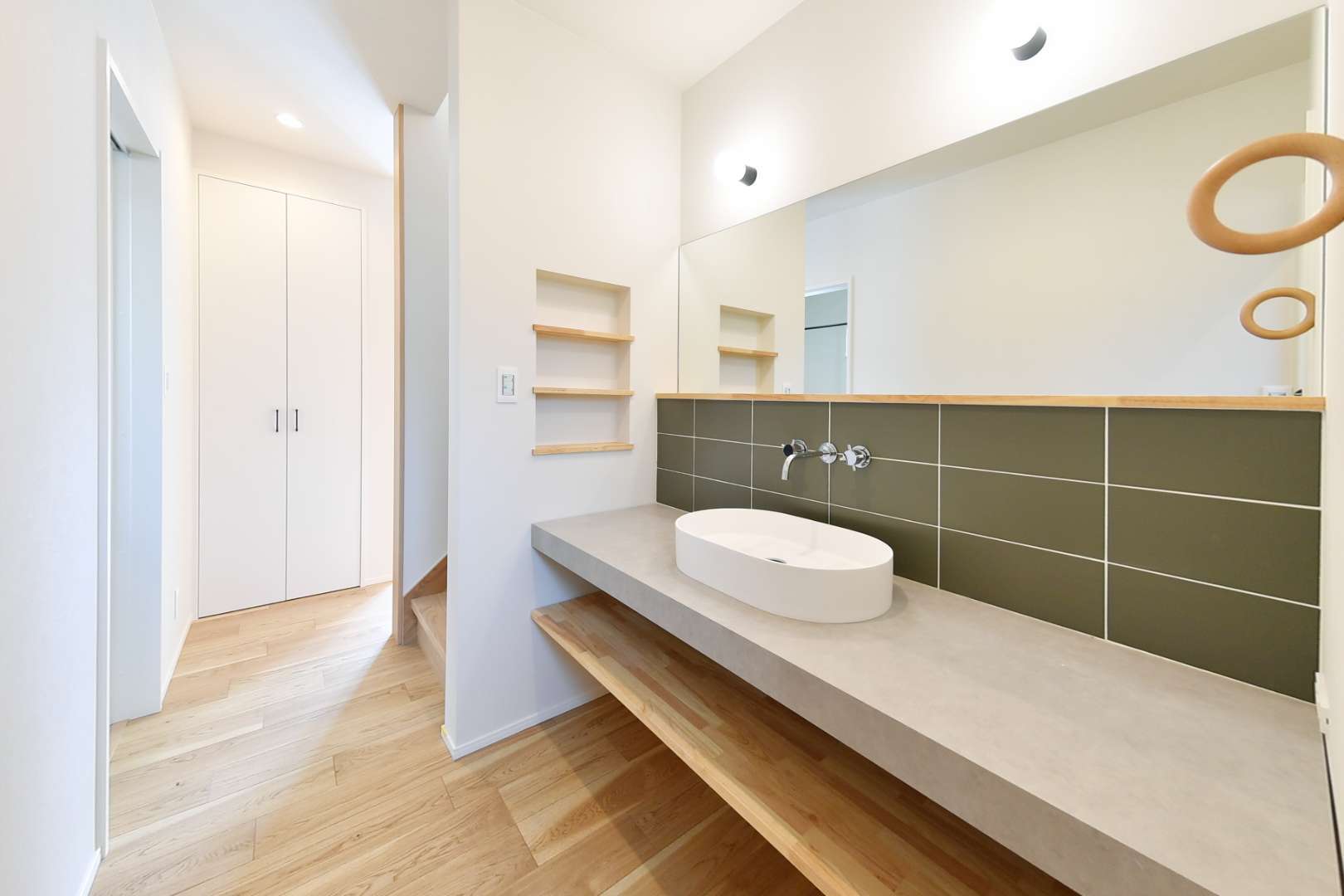 玄関からキッチンに至るまで、日常動線と機能性を重視し、計画的に設計された住まいです。 シューズクロークにはコート掛けを設け、外出・帰宅時…
